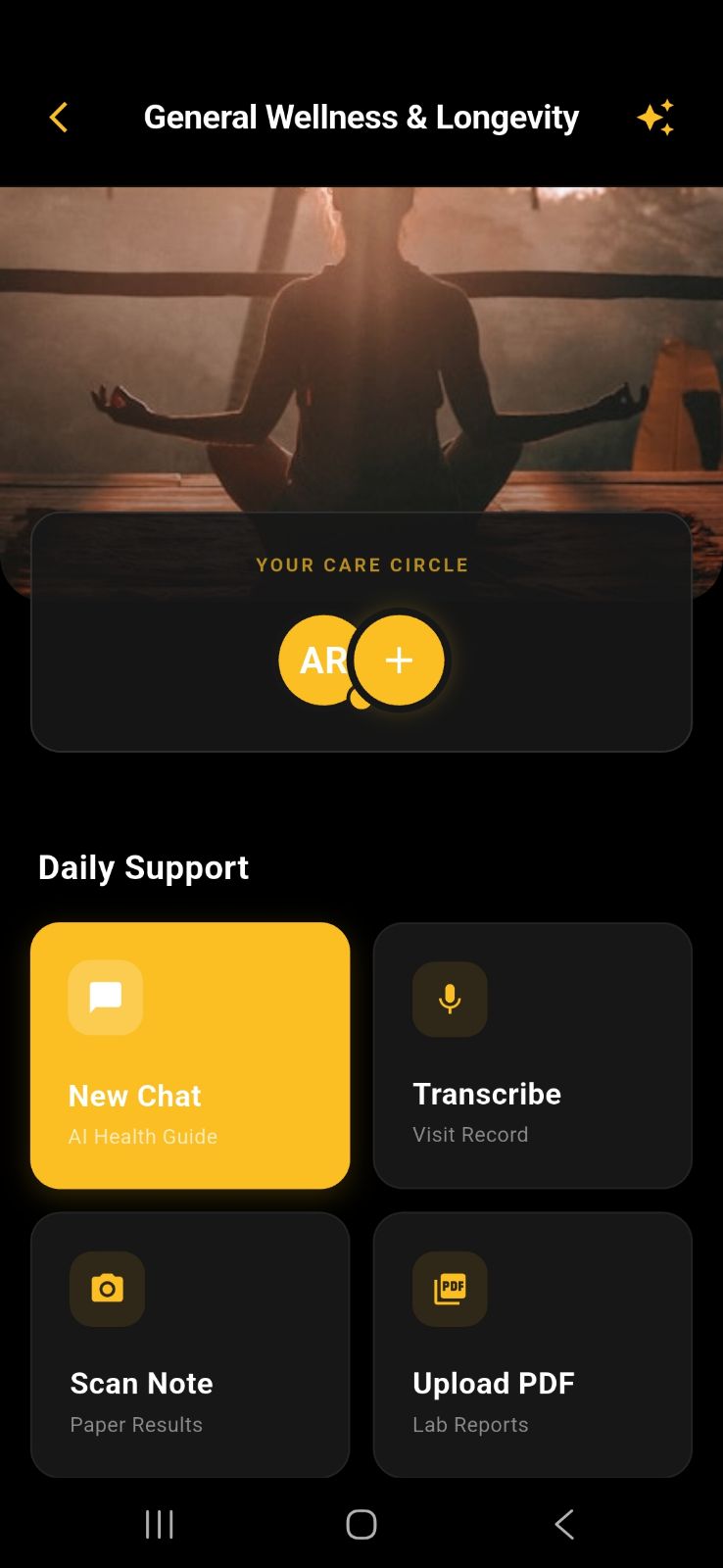 Create dedicated Health Spaces for Diabetes, Heart Health, Thyroid, or anything else. Each comes with its own AI chatbot, document storage, clinical transcriber, and care circle.